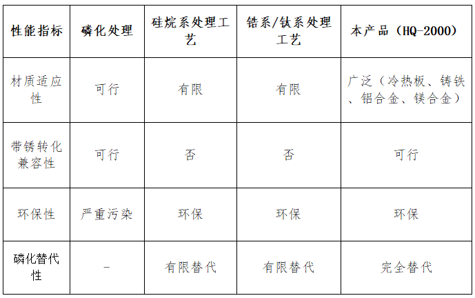 三、HQ-2000與磷化處理及主流磷化替代產(chǎn)品對比分析
