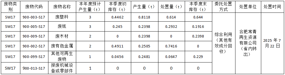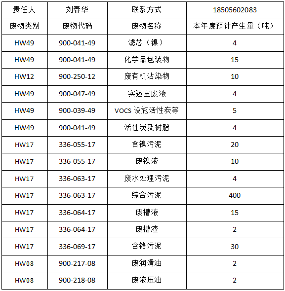 2025年度危險廢物預(yù)計產(chǎn)生量信息