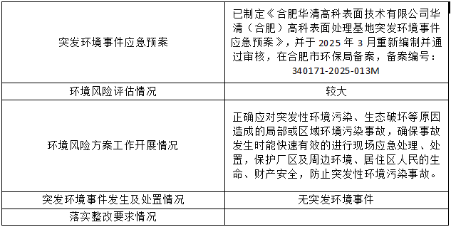 合肥華清高科表面技術(shù)股份有限公司 2025年第三季度信息公開表