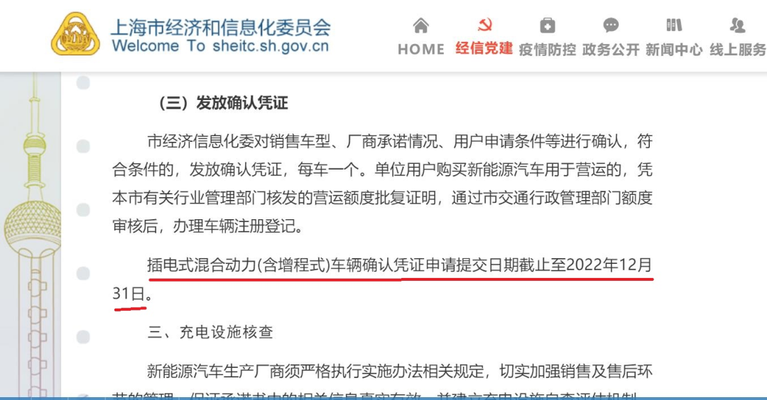 據(jù)上海市出臺的《上海市鼓勵購買和使用新能源汽車實(shí)施辦法》,自2023年1月1日起,對插電式混合動力車(含增程式混合動力車)不再發(fā)放新能源汽車專用牌照額度。也就是說,從2023年開始,在上海購買插電混動的消費(fèi)者將不再享有免費(fèi)牌照的福利,需要跟燃油車一樣拍牌。