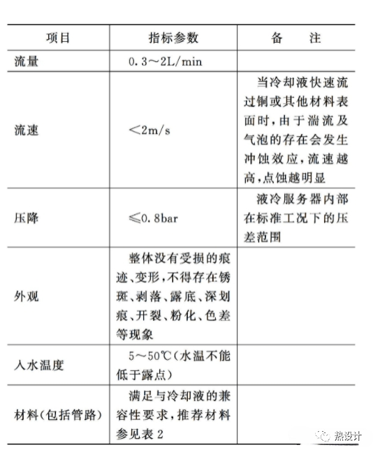 冷板的設(shè)計需要考慮可維護性,對于內(nèi)存等易維護部件,建議做到免工具維護冷板的對外管路接頭為快速接頭,不同的液冷系統(tǒng),可選擇盲插接頭和非盲插接頭。冷板指標(biāo)要求見下圖: