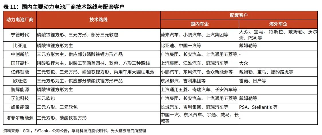 劉凱指出,國(guó)內(nèi)電池廠中,寧德時(shí)代同時(shí)布局磷酸鐵鋰與高鎳三元,國(guó)軒高科、鵬輝能源偏重磷酸鐵鋰,中創(chuàng)新航、孚能科技、欣旺達(dá)、蜂巢能源等企業(yè)主要側(cè)重三元電池,億緯鋰能、塔菲爾新能源布局較為均衡。