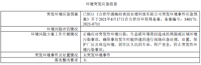 合肥華清海陽表面處理科技有限公司2023年第一季度信息公開表