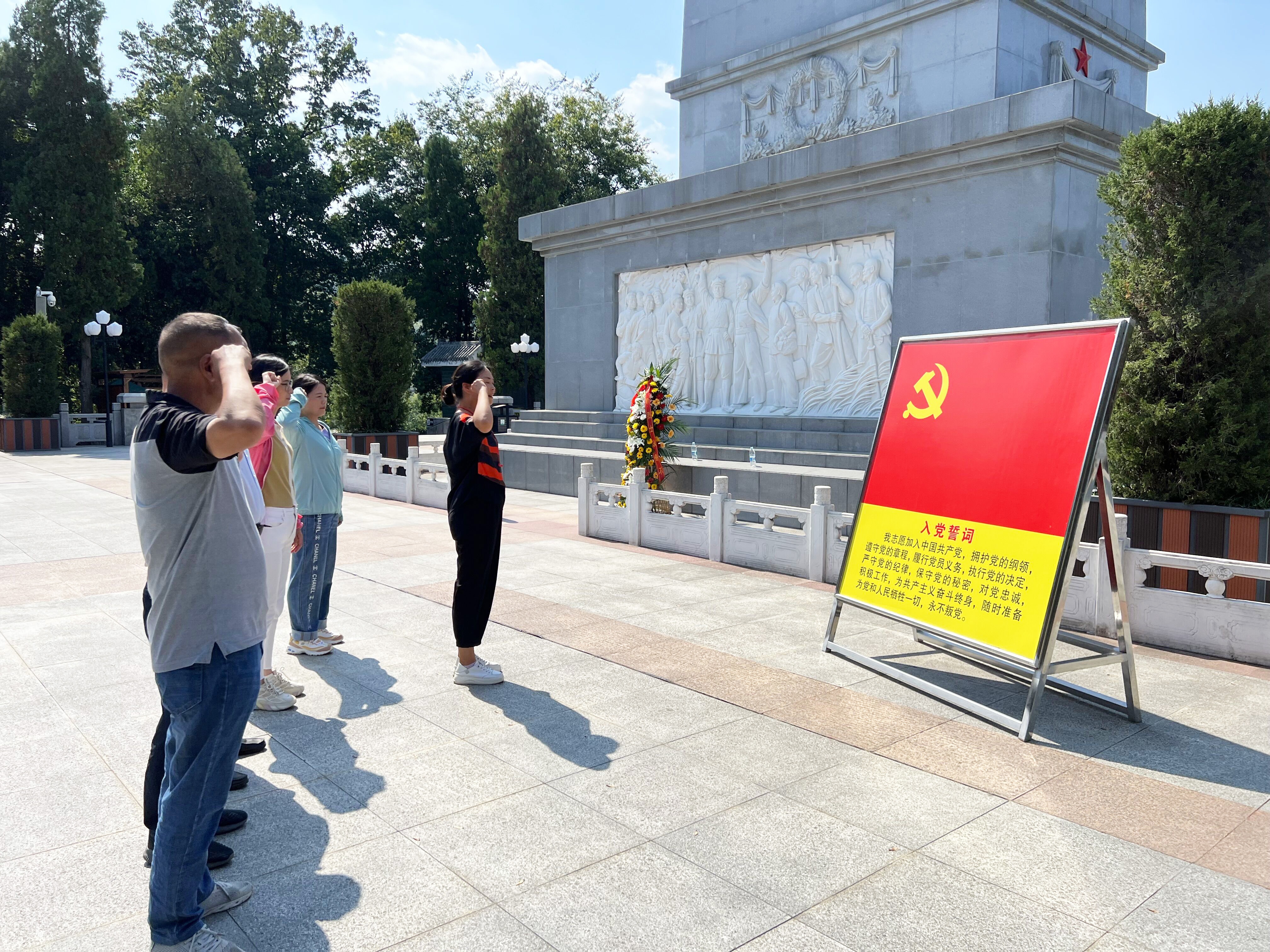 在金寨縣紅軍廣場革命烈士紀(jì)念塔下,參與活動(dòng)的全體黨員同志向革命先烈敬獻(xiàn)了花籃,隨后莊重地舉起右手,重溫了入黨誓詞,進(jìn)一步堅(jiān)定了共產(chǎn)黨人的理想信念。