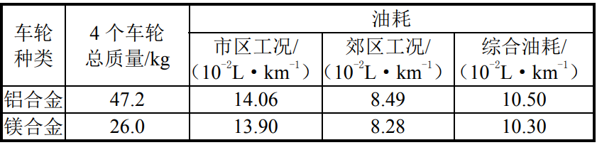 (2)整車能耗方面,同規(guī)格鎂合金車輪可有效降低整車質(zhì)量,進(jìn)而降低整車能耗;