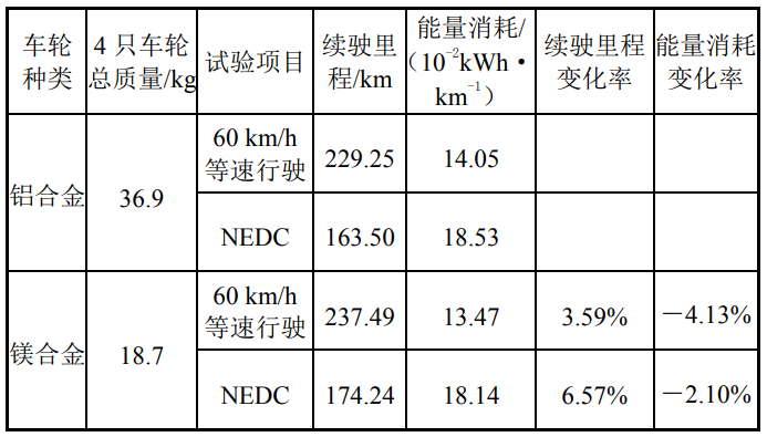 通過臺架試驗(yàn)和整車路試,對比鋁合金車輪與鎂合金車輪對電動車?yán)m(xù)駛里程和整車能量消耗的影響。