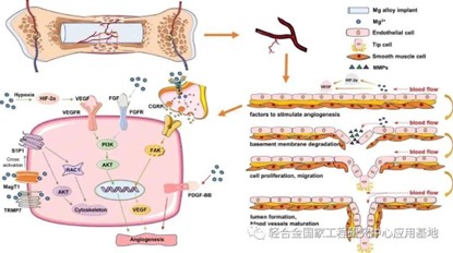 圖3 鎂合金降解產(chǎn)生的鎂離子促進骨愈合過程中血管再生的示意圖