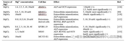 表1 不同濃度鎂離子對不同成骨相關(guān)細胞成骨分化能力的影響