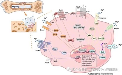 圖4 鎂合金促成骨作用相關(guān)信號通路示意圖