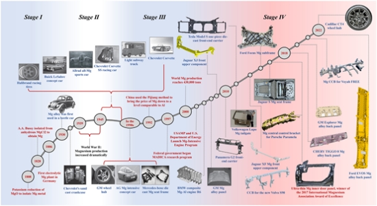 鎂合金在汽車輕量化領(lǐng)域的應(yīng)用正在逐步增多,并且隨著新能源汽車的興起,其應(yīng)用前景更加廣闊。根據(jù)"節(jié)能與新能源汽車2.0技術(shù)路線圖"的判斷,整車輕量化系數(shù)將逐步降低,這意味著汽車制造商需要尋找更輕、更強(qiáng)的材料來(lái)替代傳統(tǒng)材料。鎂合金作為一種輕質(zhì)工程材料,具有低密度、高比強(qiáng)度和高比剛度等特點(diǎn),非常適合用于汽車零部件制造。在過(guò)去的幾十年里,鎂合金的發(fā)展經(jīng)歷了幾個(gè)階段。首先是20世紀(jì)30年代之前,鎂合金開(kāi)始應(yīng)用于制造業(yè);然后是第二次世界大戰(zhàn)期間,由于軍事裝備需求,鎂合金的產(chǎn)量急劇增加;之后是鎂合金發(fā)展趨于平穩(wěn)的時(shí)期;而近20年來(lái),受到汽車尾氣排放、能源消耗和環(huán)保政策的影響,世界各國(guó)開(kāi)始重視鎂合金的開(kāi)發(fā)和研究。