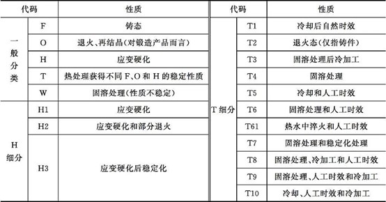 ASTM鎂合金命名法中還包括表示鎂合金性質(zhì)的代碼系統(tǒng),由字母外加一位或多位數(shù)字組成(表2-2)。合金代碼后為性質(zhì)代碼,以連字符分開(kāi)。如AZ91D-T表示熱處理態(tài)Mg-9Al-Zn合金。