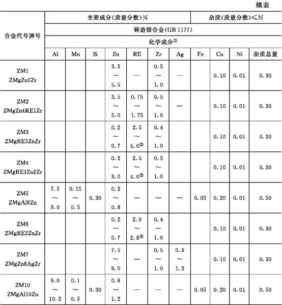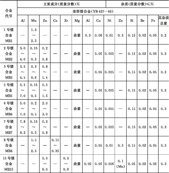 表3 國(guó)產(chǎn)鎂合金的牌號(hào)和主要成分
