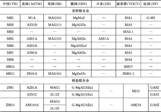 以幾個(gè)示例來(lái)說(shuō)明這種標(biāo)記方法:1號(hào)鑄造鎂合金使用ZM1表示,2號(hào)變形鎂合金使用MB2表示,5號(hào)壓鑄鎂合金使用YM5表示,5號(hào)航空鑄造鎂合金使用ZM-5表示。