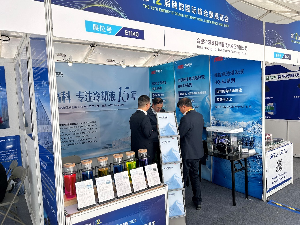 本次展會,華清高科展出有儲能電池溫控液HQ-ES系列、儲能電池浸沒液HQ-EJ系列、全釩液流電池溫控液HQ-EF系列等,吸引了眾多儲能及儲能溫控領(lǐng)域友商駐足。