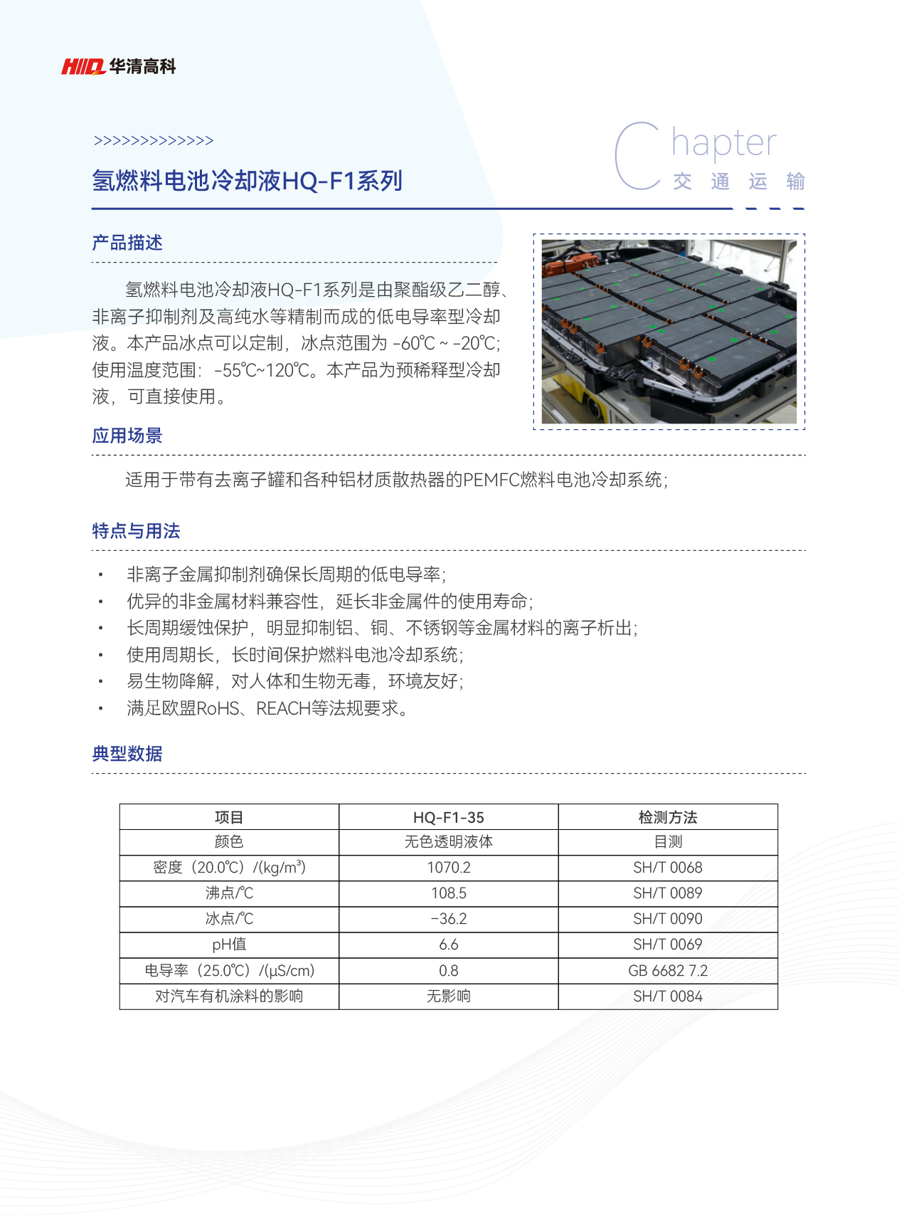 氫燃料電池冷卻液HQ-F1系列產(chǎn)品概述