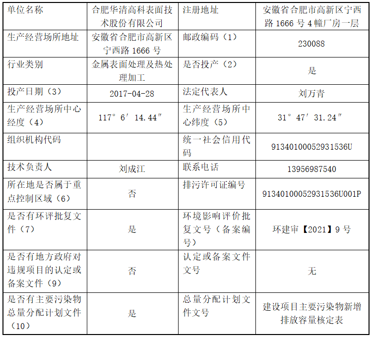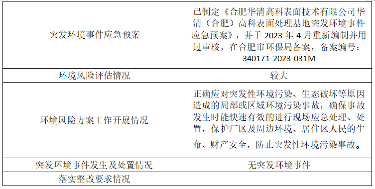 合肥華清高科表面技術(shù)股份有限公司 2024年第三季度信息公開(kāi)表
