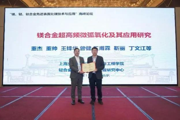 上海交通大學(xué)董杰副院長作了題為《鎂合金超高頻微弧氧化及其應(yīng)用研究》的報(bào)告