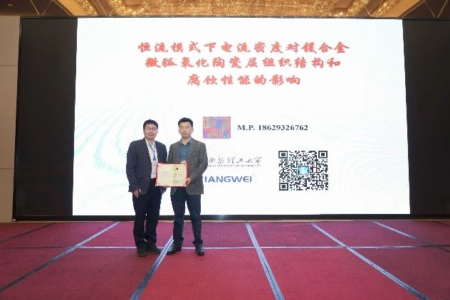 中國機(jī)械總院集團(tuán)武漢材料保護(hù)研究所有限公司郭俊灝工程師作了題為《焦磷酸銅對鎂合金微弧氧化陶瓷涂層的外觀與性能的影響》的報(bào)告