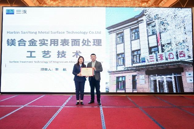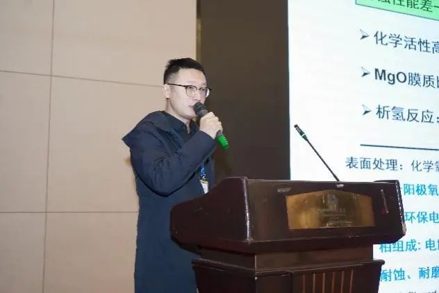 哈爾濱三泳金屬表面技術(shù)有限公司宋航高級(jí)工程師作了題為《鎂合金的實(shí)用系列表面處理工藝技術(shù)》的報(bào)告
