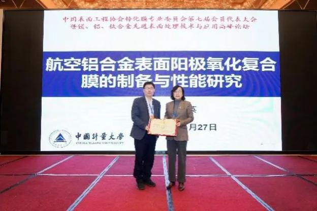 中國計(jì)量大學(xué)衛(wèi)國英院長作了題為《航空鋁合金表面陽極氧化復(fù)合膜的制備與性能研究》的報(bào)告