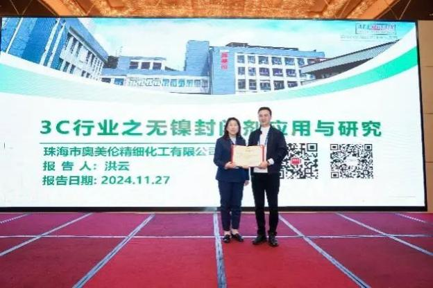 珠海市奧美倫精細(xì)化工有限公司洪云總經(jīng)理作了題為《3C行業(yè)之無鎳封閉劑應(yīng)用與研究》的報(bào)告