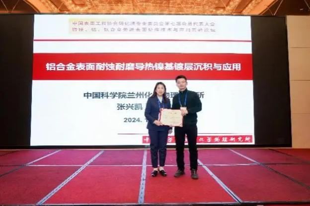 中國科學(xué)院蘭州化學(xué)物理研究所張興凱副研究員作了題為《鋁合金表面耐蝕耐磨導(dǎo)熱鎳基鍍層沉積與應(yīng)用》的報(bào)告