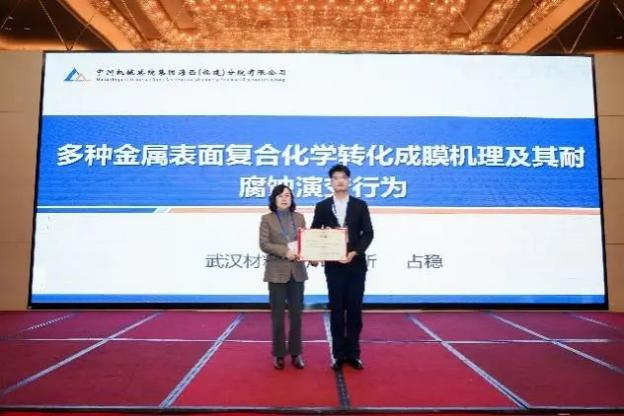 中國機(jī)械總院集團(tuán)武漢材料保護(hù)研究所有限公司王文豪工程師作了題為《多種金屬表面復(fù)合化學(xué)轉(zhuǎn)化成膜機(jī)理及其耐腐蝕演變行為》的報(bào)告