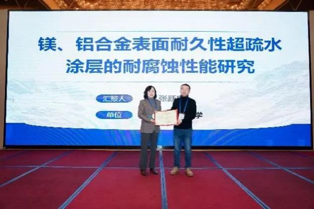 太原科技大學(xué)張躍忠副教授作了題為《鎂、鋁合金表面耐久性超疏水涂層的耐腐蝕性能研究》的報(bào)告