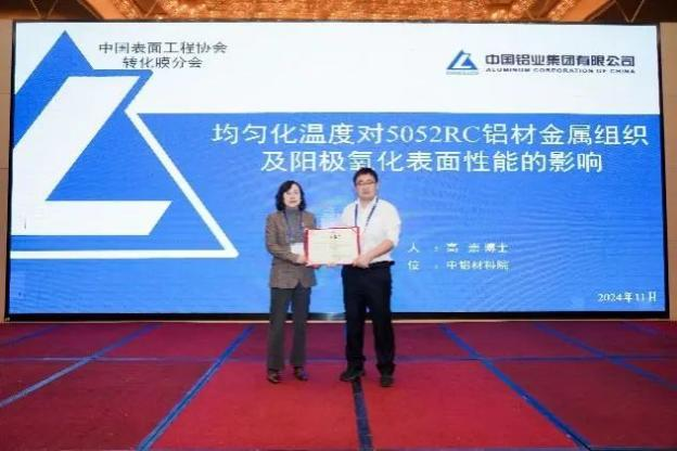 中鋁材料應(yīng)用研究院有限公司高崇高級(jí)工程師作了題為《5xxx 系鋁合金均勻化工藝對陽極氧化的影響及陽極氧化壓鑄件現(xiàn)狀及展望》的報(bào)告