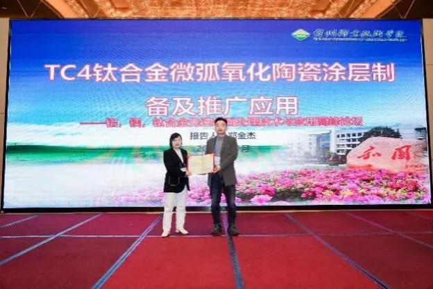 臺(tái)州職業(yè)技術(shù)學(xué)院鄭金杰副教授作了題為《TC4 鈦合金微弧氧化陶瓷涂層制備及推廣應(yīng)用》的報(bào)告