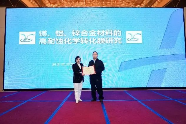 深圳鴻美特科技有限公司劉彥明總經(jīng)理作了題為《鎂、鋁、鋅合金材料的高耐蝕轉(zhuǎn)化膜研究》的報(bào)告