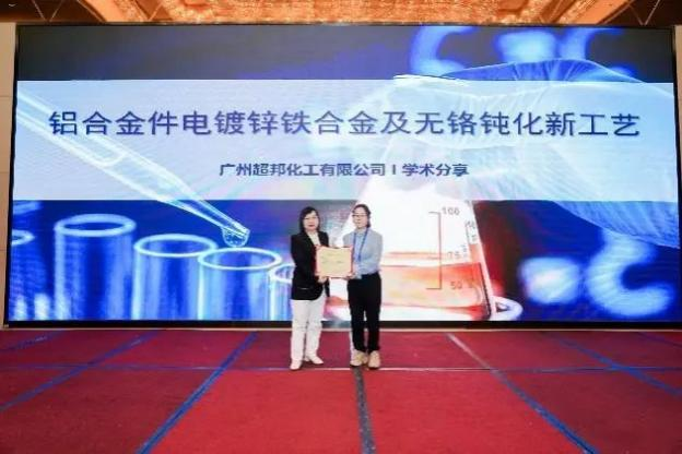 廣州超邦化工有限公司李小花工程師作了題為《鋁合金工件電鍍鍍鋅鐵合金及硅烷無鉻鈍化新工藝》的報(bào)告
