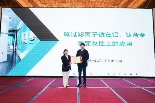安徽純源鍍膜科技有限公司董中林研發(fā)總監(jiān)作了題為《磁過濾離子鍍在鋁、鈦合金表面改性上的應(yīng)用》的報(bào)告