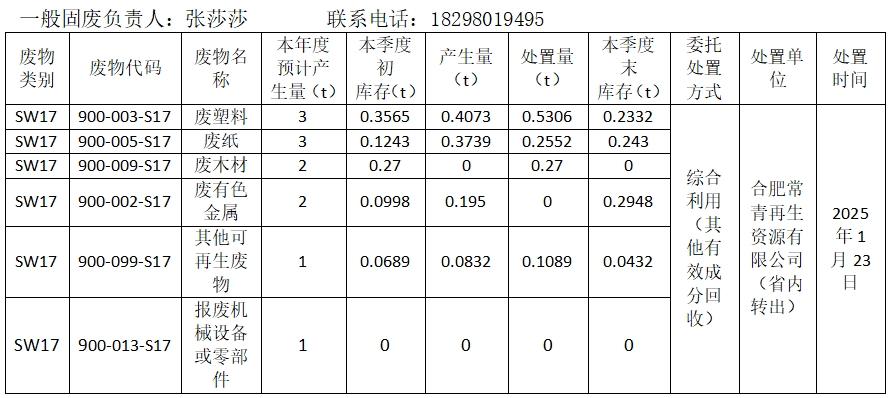 2025年度危險廢物預(yù)計(jì)產(chǎn)生量信息