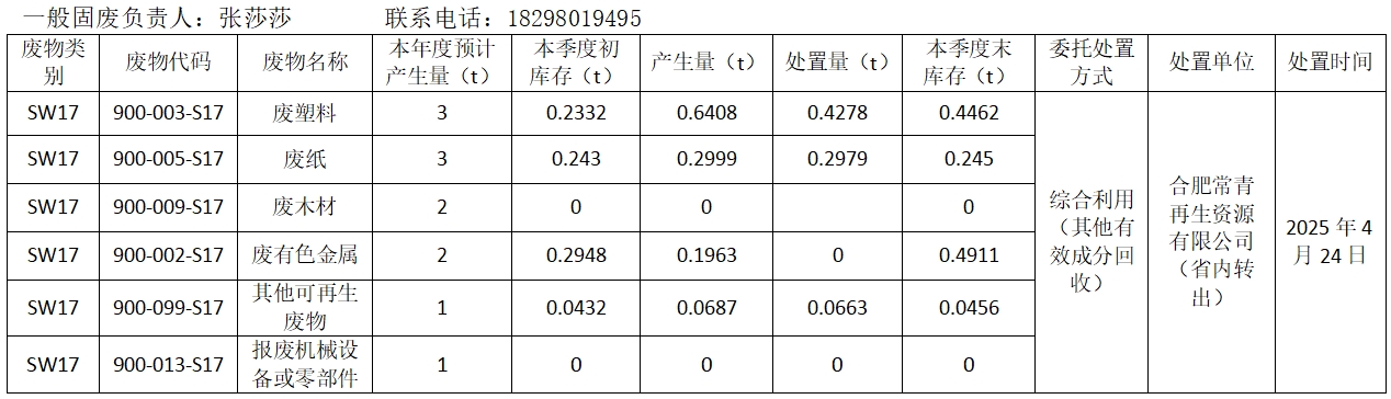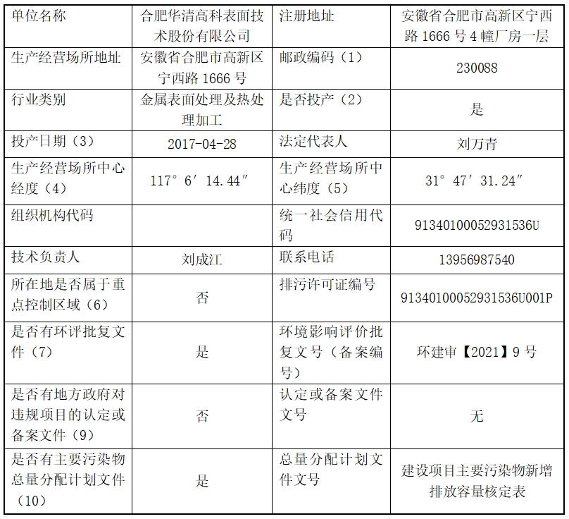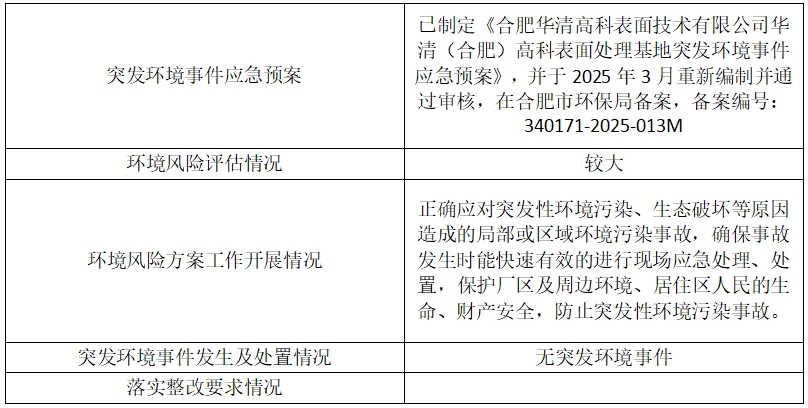 合肥華清高科表面技術(shù)股份有限公司 2025年第二季度信息公開表