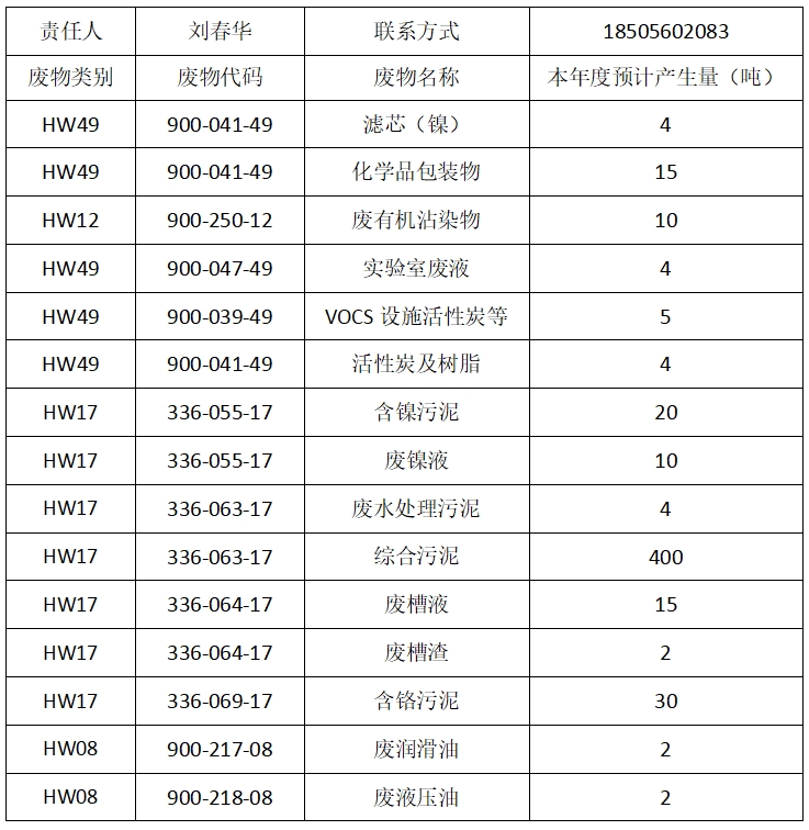 2025年度危險(xiǎn)廢物預(yù)計(jì)產(chǎn)生量信息
