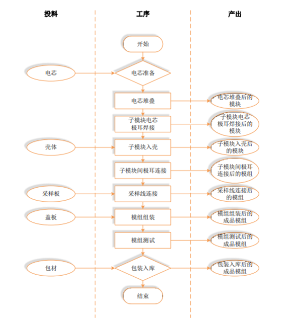 模組生產(chǎn)流程主要為子模塊生產(chǎn)工序,以及由子模塊裝配成模組的工序,無(wú)副產(chǎn)品產(chǎn)出。